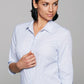 With bust darts, front and back waist darts giving a slim look fit. The ‘Magic Button’ prevents the placket gaping and the sleeve features bias cut cuffs.